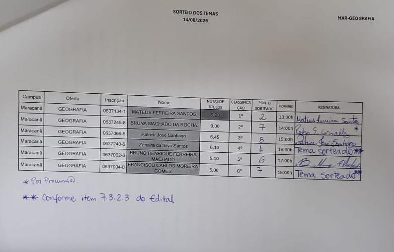 = Temas sorteados para prova de aula - Geografia - MARACANÃ: Arquivo