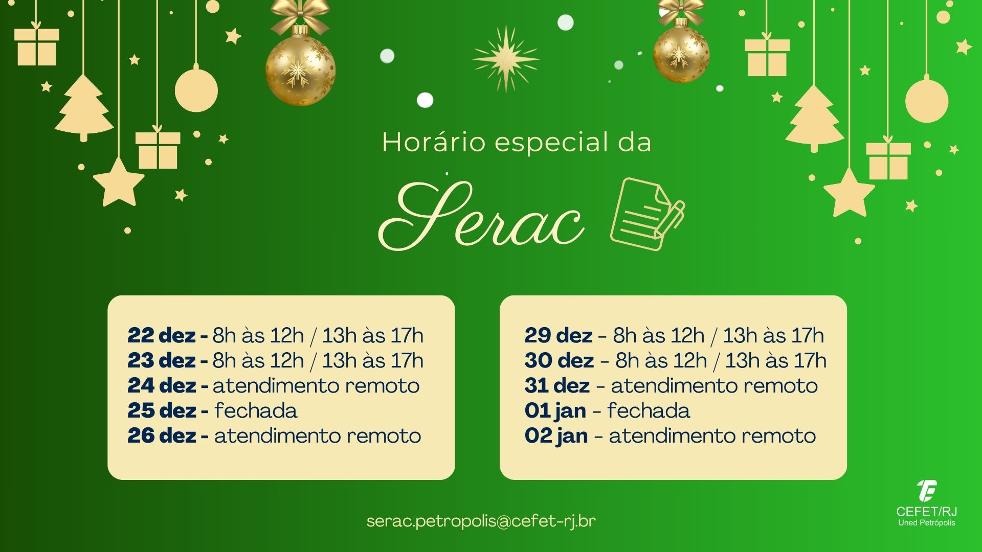 Página inicial > Espaço do campus > Horário especial de fim de ano no Cefet/RJ Petrópolis