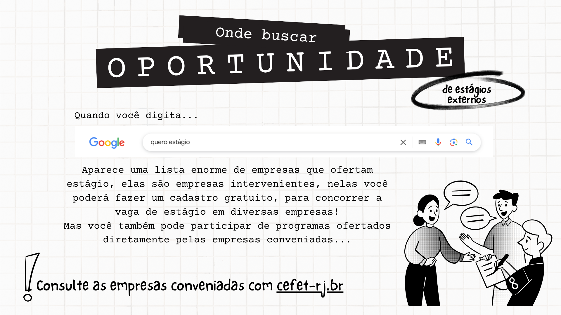 Consiga a vaga de estágioO estudante é responsável por buscar a oportunidade. O núcleo de estágio não oferta nem intermedeia vagas. Saiba como.