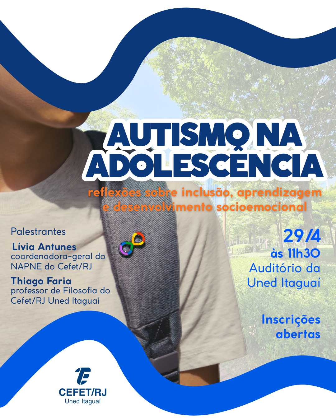 A iniciativa é organizada pelo NAPNE e pela coordenação da educação profissional técnica de nível médio da Uned Itaguaí. De acordo com os responsáveis, o evento tem papel formativo, social e transformador, pois busca promover a conscientização. “A adolescência já é uma fase complexa por si só e, quando associada ao Transtorno do Espectro Autista (TEA), surgem desafios específicos relacionados à identidade, à interação social, à autonomia e à saúde emocional. Discutir esse tema ajuda a combater preconceitos e ampliar a compreensão da sociedade, sobretudo no contexto escolar”, destacou Simone Benevides, coordenadora do NAPNE da Uned Itaguaí.