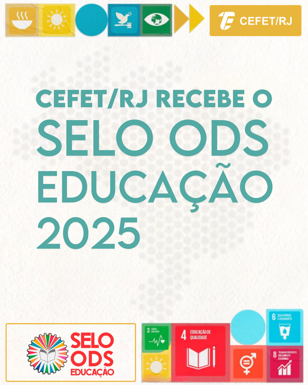 No dia 15 de dezembro, o Cefet/RJ recebeu o Selo ODS Educação 2025. A conquista foi resultado do trabalho do projeto de extensão “Selo ODS Educação 2025: novos desafios para o Cefet/RJ”, coordenado pelas professoras Aline Trigo e Claudia Fragelli. A certificação é realizada pelo Instituto Selo Social (@selosocial) através de participação gratuita e patrocinada nacionalmente pela Editora Edebê.