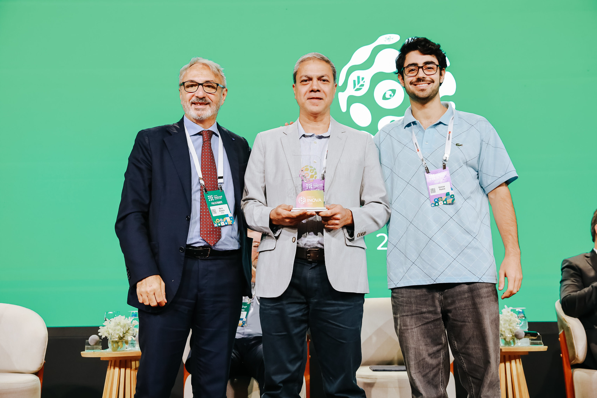 O professor do PPCIC e coordenador do projeto, Eduardo Bezerra (ao centro), e o estudante Vinícius Borges (à direita) receberam o Prêmio Inova, em Brasília