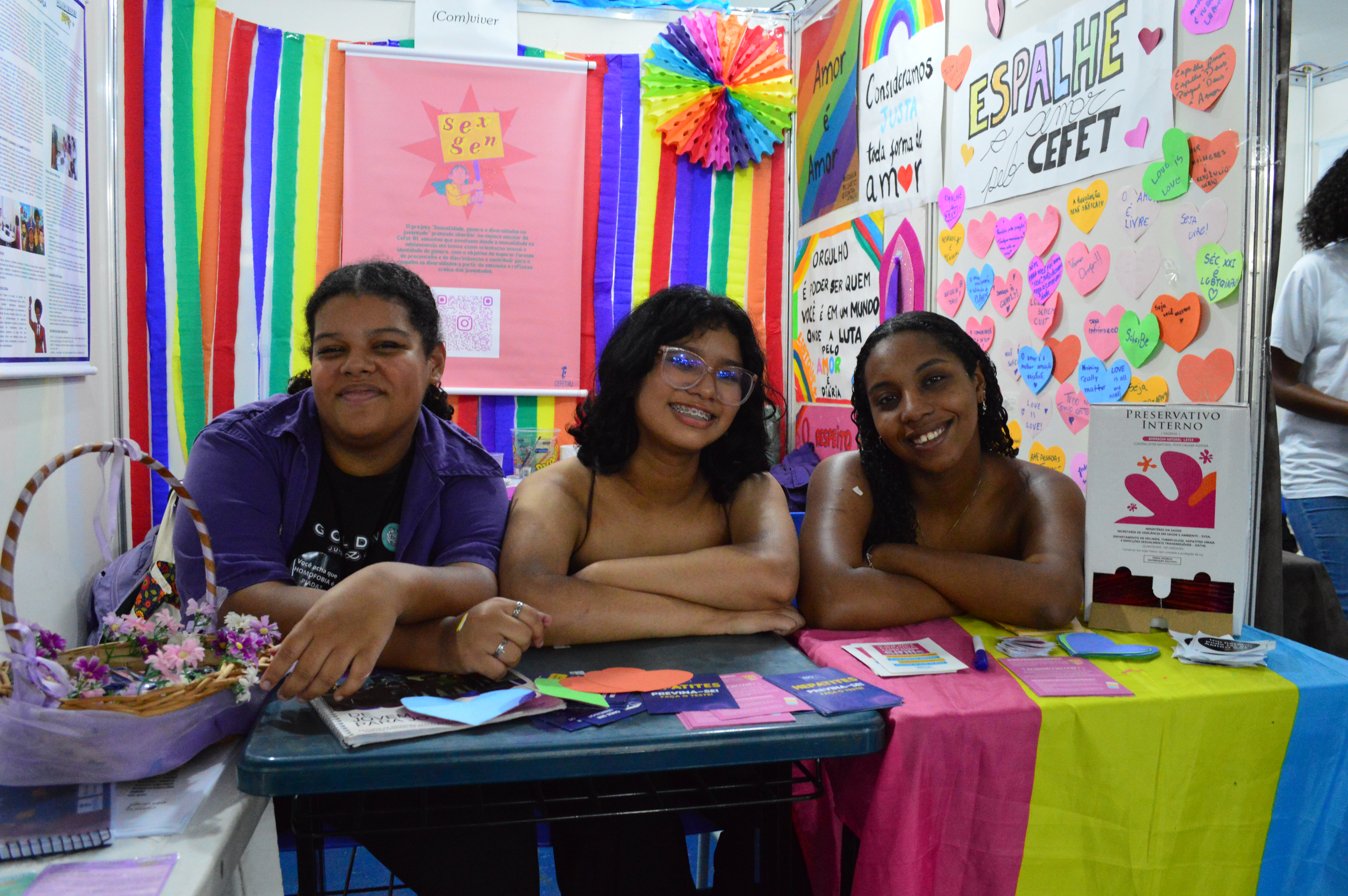 Além das diversas ferramentas tecnológicas, a Sepex também reúne trabalhos de outras áreas do conhecimento, como o projeto “(Com)Viver: identidades e sexualidades juvenis”, coordenado pela professora Cristiana Valença. A iniciativa acolhe estudantes LGBTQIAPN+ que buscam orientação e apoio, promovendo, ao longo do ano, atividades e rodas de escuta voltadas para a conscientização sobre diversidade. A jovem Maria dos Santos, aluna do curso técnico em Eventos, conheceu o projeto na Sepex 2023, quando ainda nem era estudante do Cefet/RJ e visitava a exposição. “Achei a proposta muito interessante, porque, além de promover a diversidade, o projeto atua em outras causas importantes, como o combate ao machismo”, afirmou. Um dos trabalhos desenvolvidos foi a criação de um dicionário de verbetes, que ajuda pessoas leigas a conhecerem termos relacionados à identidade de gênero, à sexualidade e à diversidade de forma acessível.