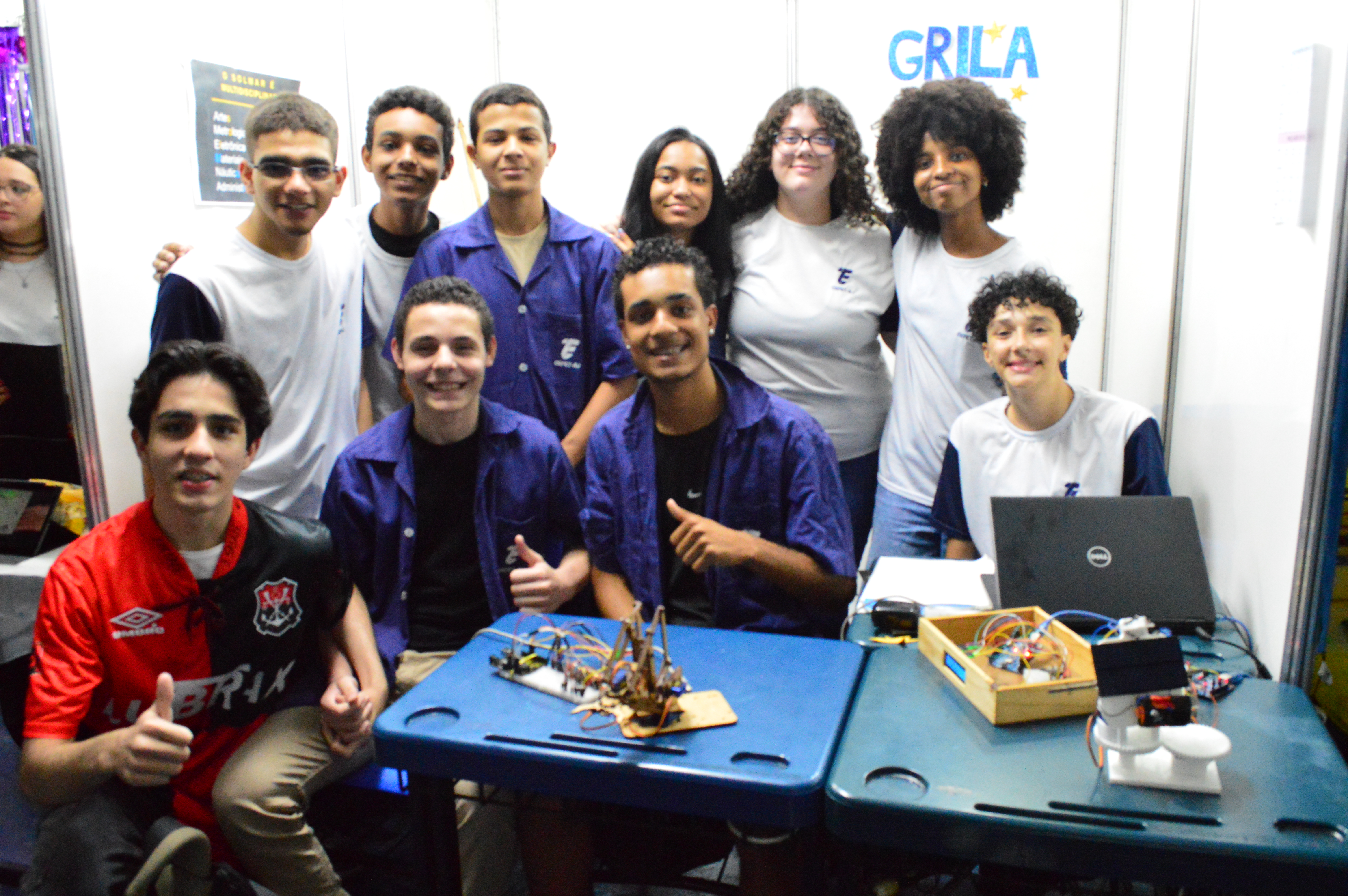 Mas não são apenas os veteranos que desenvolvem projetos interessantes. Quinze alunos do 1º ano do ensino médio/técnico em Mecânica construíram um braço robótico capaz de carregar pequenas cargas e acionar interruptores, além de um sensor de frequência cardíaca e um carregador de celular – tudo isso em apenas alguns meses. Os jovens fazem parte do projeto Grila 2.0 e desenvolveram esses equipamentos utilizando tecnologia Arduino. “Eu não tinha conhecimento nenhum em mecânica até entrar no projeto, mas sempre adorei montar e desmontar coisas desde pequenininha. Estou gostando muito de aprender e sonho em cursar Engenharia no futuro”, disse Leila Batalha, uma das oito meninas que participam do projeto.