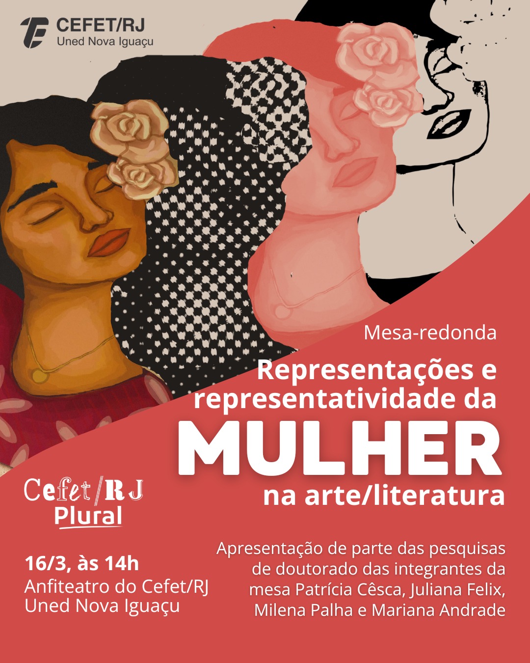 No dia 16/3 (segunda-feira), às 14h, o Cefet/RJ Uned Nova Iguaçu irá realizar a mesa-redonda "Representações e representatividade da mulher na arte/literatura". A iniciativa, que irá ocorrer no auditório da unidade, visa atender à Lei n.º 14.986/2024, que institui a Semana de Valorização de Mulheres que Fizeram História no âmbito das escolas de educação básica do país.  O evento também é aberto à comunidade externa. As inscrições ocorrerão durante a mesa-redonda e todos os participantes receberão certificado.