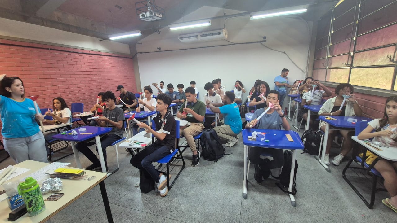 Participantes aprendem, na prática, a construir foguetes com materiais simples durante oficina realizada na Uned Nova Iguaçu