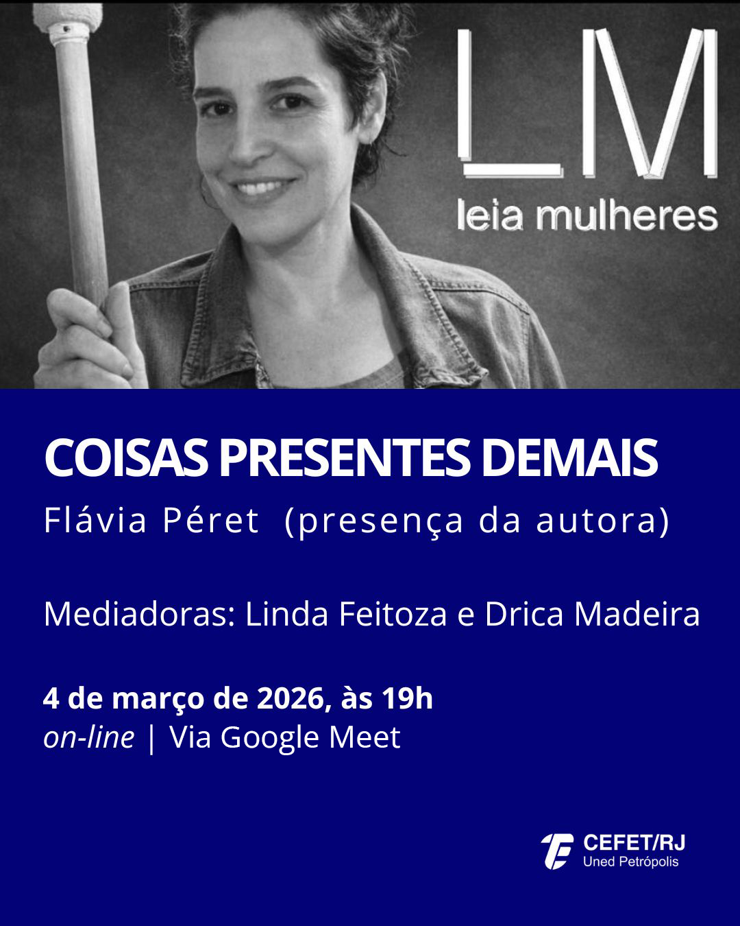 O evento, que contará com a mediação de Linda Feitoza e Drica Madeira, será on-line, a partir das 19h, pelo Google Meet. Os interessados em participar devem solicitar o link do evento por meio das redes sociais – Leia Mulheres Petrópolis no Instagram e grupo Leia Mulheres Petrópolis-RJ no Facebook