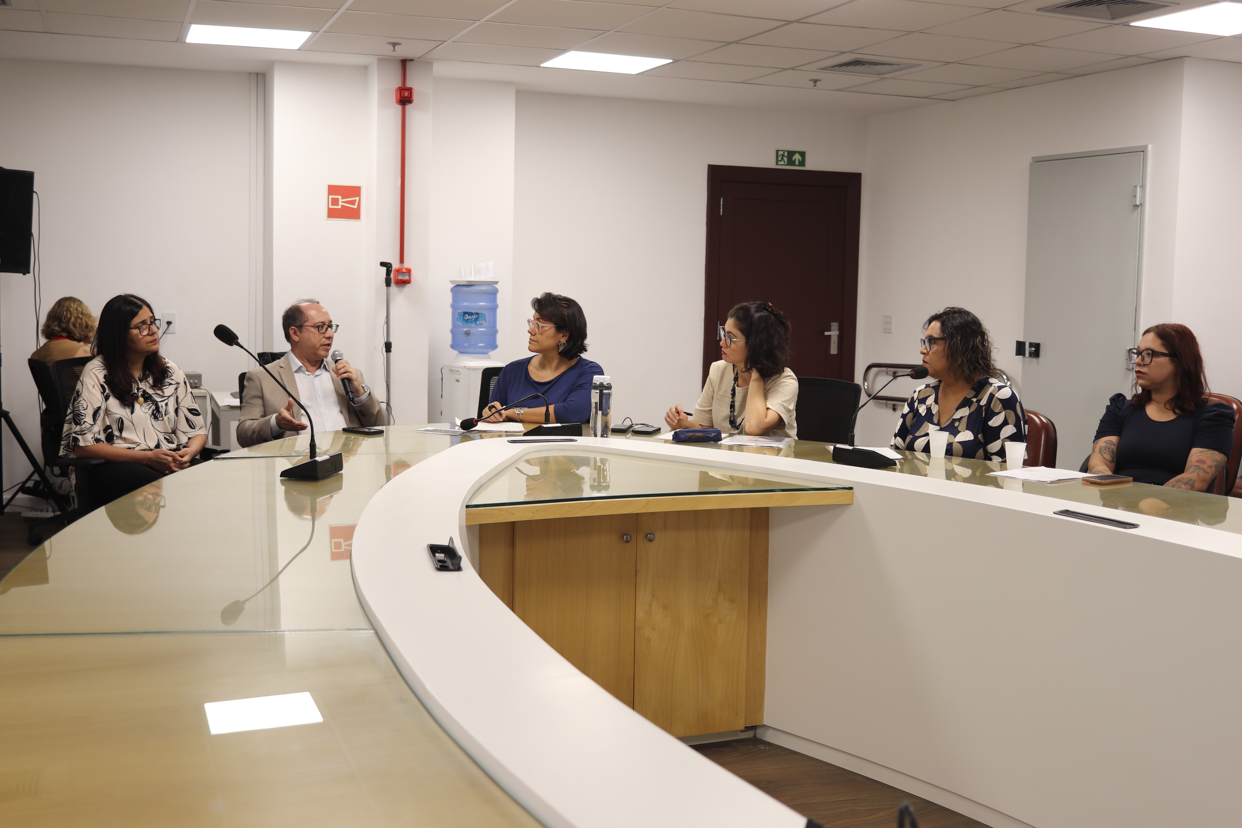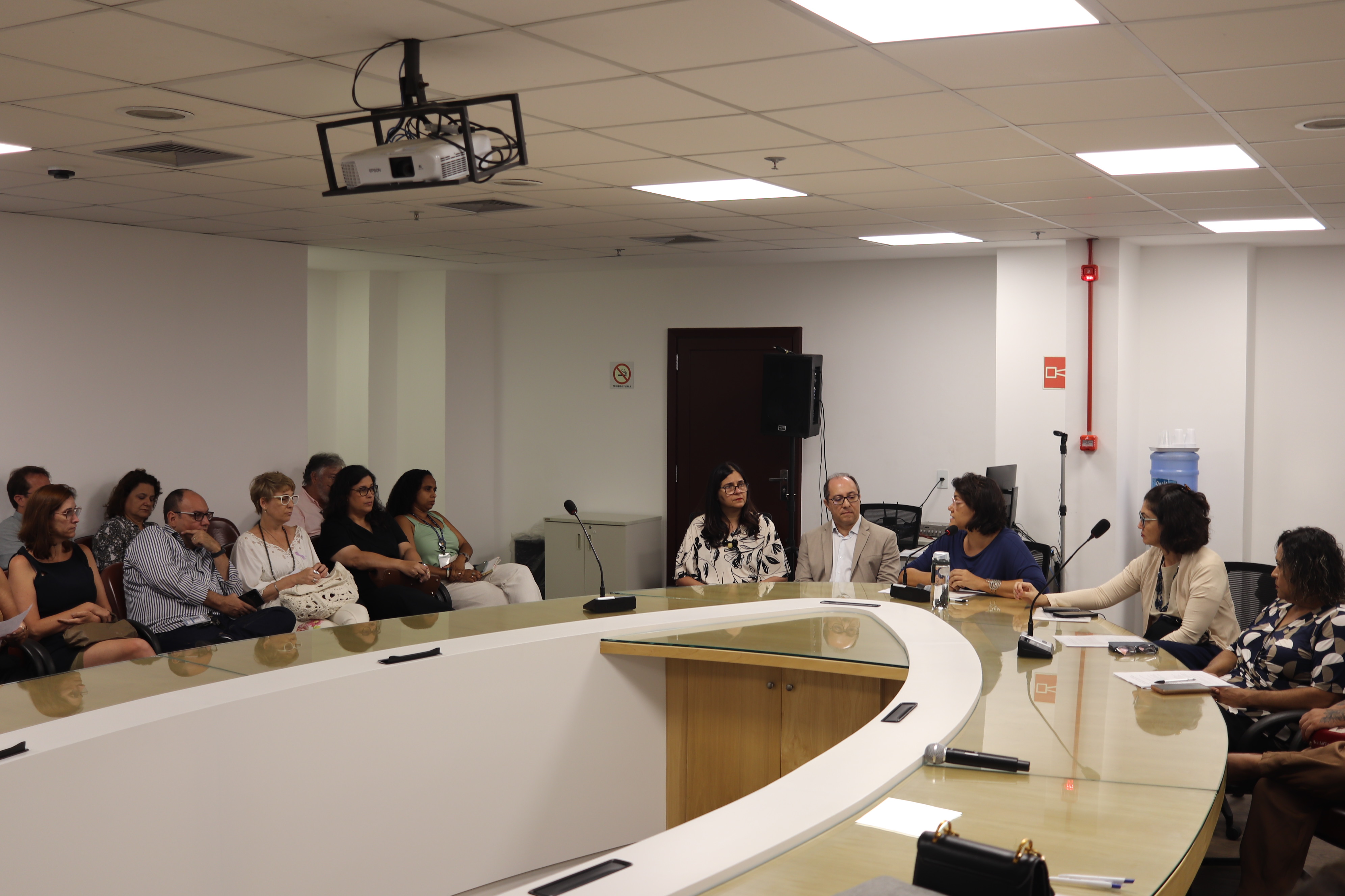 Nessa segunda-feira (15), a Direção-Geral do Cefet/RJ reuniu-se com representantes do Ministério da Gestão e da Inovação (MGI) e do Comitê Gestor do Programa de Prevenção e Enfrentamento do Assédio e da Discriminação na Administração Pública Federal (PFPEAD). O encontro ocorreu na sede da Superintendência Regional de Administração do MGI, no Palácio da Fazenda, no Rio de Janeiro, e contou com a participação de membros da diretoria e de setores estratégicos do Cefet/RJ, além de representantes da Advocacia-Geral da União (AGU), do Ministério da Educação (MEC) e do Ministério das Mulheres.