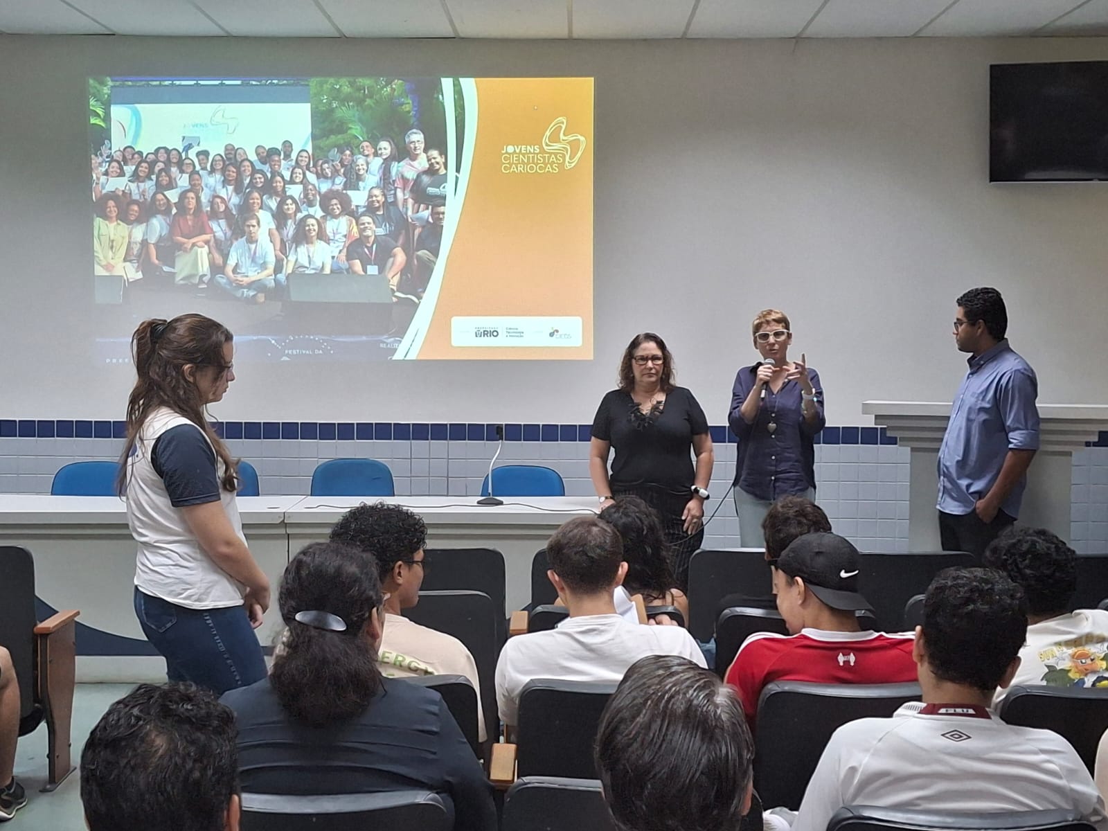 O Auditório 2 da Unidade Maracanã do Cefet/RJ ficou lotado na manhã de segunda-feira (23) para receber a secretária municipal de Ciência, Tecnologia e Inovação do Rio de Janeiro, Tatiana Roque, que apresentou o Programa Jovens Cientistas Cariocas a estudantes de graduação. Em sua 3ª edição, o programa é uma iniciativa da Prefeitura da Cidade do Rio de Janeiro, por meio da Secretaria Municipal de Ciência, Tecnologia e Inovação (SMCT-Rio), em parceria com o Centro Integrado de Estudos e Programas de Desenvolvimento Sustentável (CIEDS). As inscrições estão abertas até 29 de março. Saiba mais e acesse o edital.